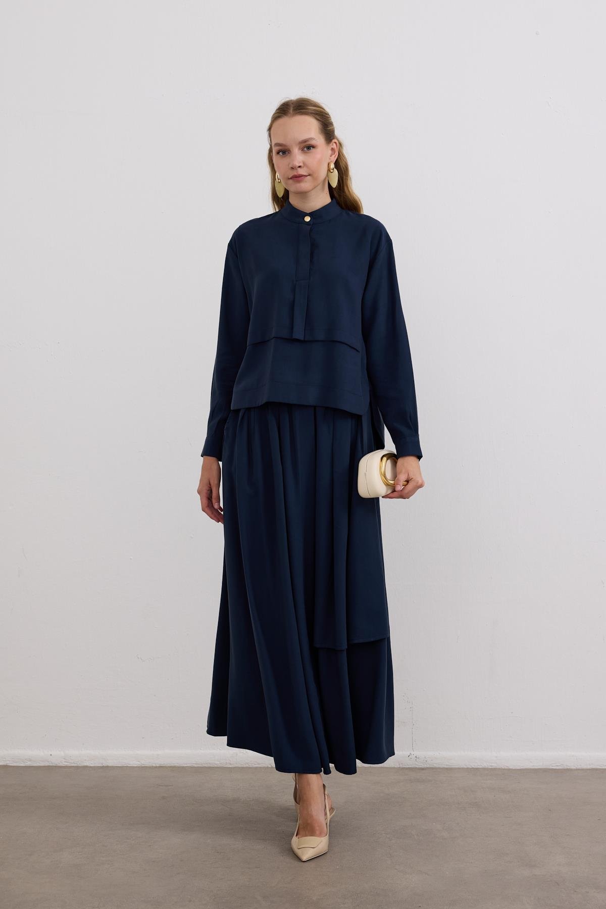 Bianca Allerli Asimetrik Etekli Takım LACİVERT